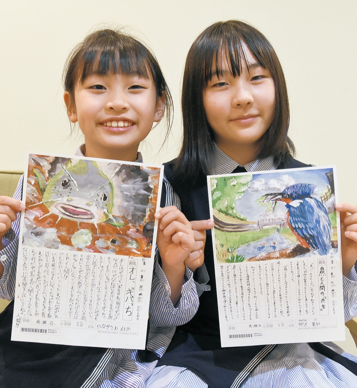 市環境創造局長賞に選ばれた姉の稟彩さんは受賞について「頑張って描いてよかった」と笑顔。テーマにしたカワセミについては図書館やネットで調べるとともに、瀬谷環境ネットの宮島行壽代表にも話を聞いて絵を描いたという。また、環境破壊によってカワセミの個体数が減っていることに着目。自然と人間の共生について文章をまとめ、稟彩さんは「可愛いカワセミが沢山飛んでいてほしいし、生き物をもっと好きになってほしい」とコメントした。