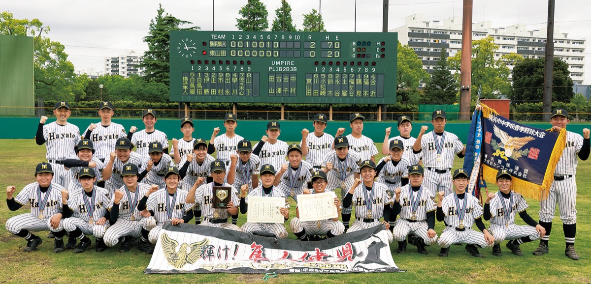 横浜隼人中学・高等学校の中学野球部(佐野辰徳監督)は、横浜市中学校春季野球大会に出場し、5月8日の決勝を制し初優勝を飾った。この結果、同28日に開幕する県大会に進出。加えて、8月に開かれる全日本大会に開催地枠での出場が決まった。同部が全国大会に出場するのは初。