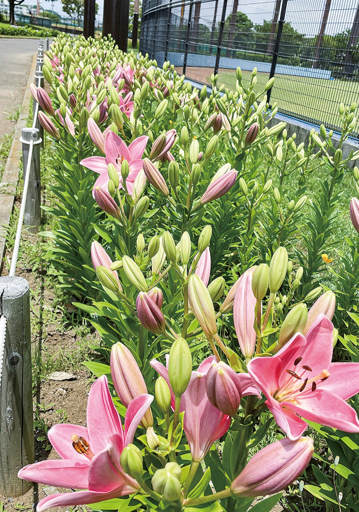 境川沿いにある瀬谷本郷公園(本郷1の70の2)で、ユリが見ごろを迎え、来園者を楽しませている。