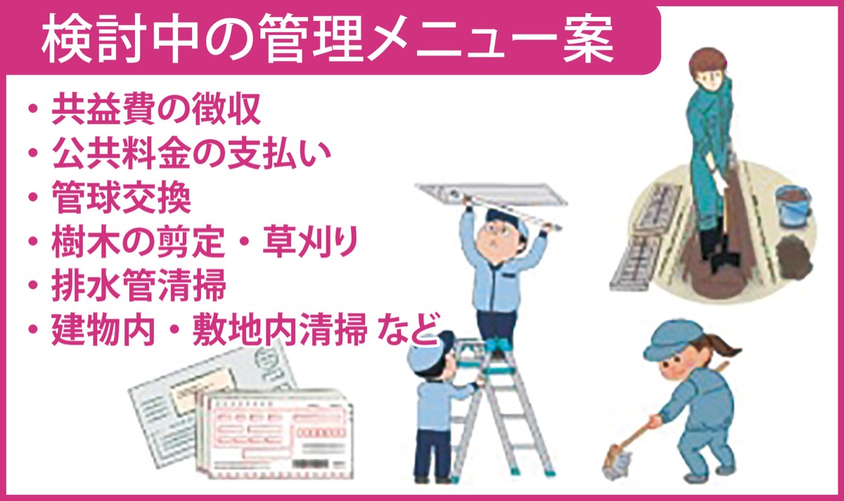 共用部分の草刈り、樹木の剪定、廊下の電球交換、公共料金の支払い等についても、横浜市が複数の業務メニューを用意して、住民側が希望する項目を選択する制度に変更する予定です。