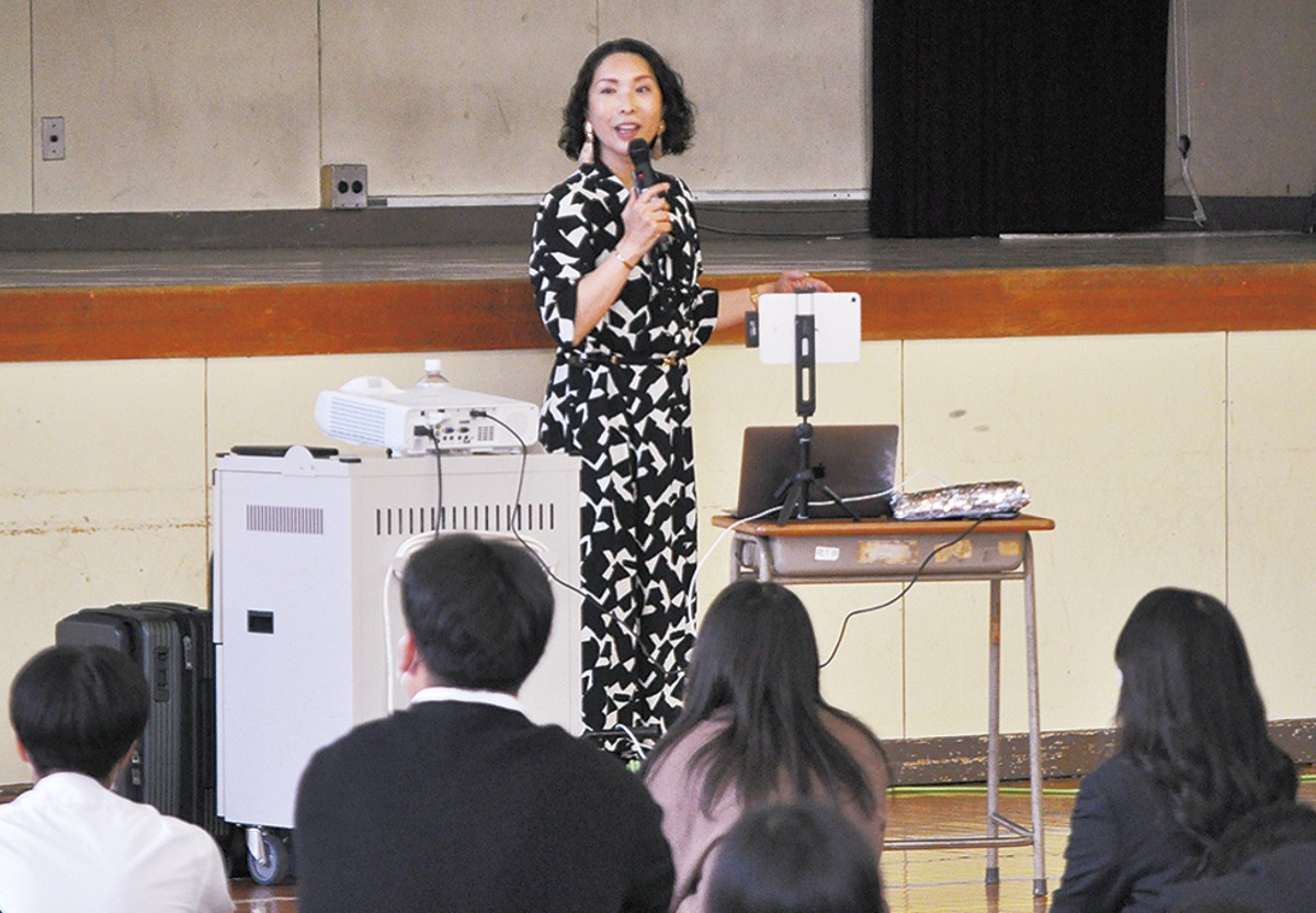 コミュニケーション講師で心理セラピストの吉井奈々さんが今月21日に瀬谷西高校で講演会を行い、「自分が好きと思えることを大切にしてください」と生徒たちに呼びかけた。
