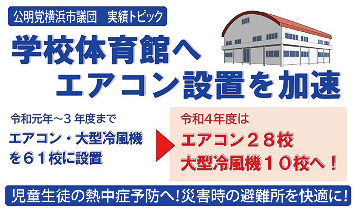 我が党の強い申入れで普通教室や主要特別教室の空調の全校整備が完了。3年度からは体育館への整備が本格化。今夏は猛暑が続き、給食室で働く方々から過酷な環境だったとのご相談を受けて、「給食室の空調も早急に整備すべき」と主張。教育長は「他都市の事例も踏まえ、課題解決に向けて早急に検討する」旨を明言しました。