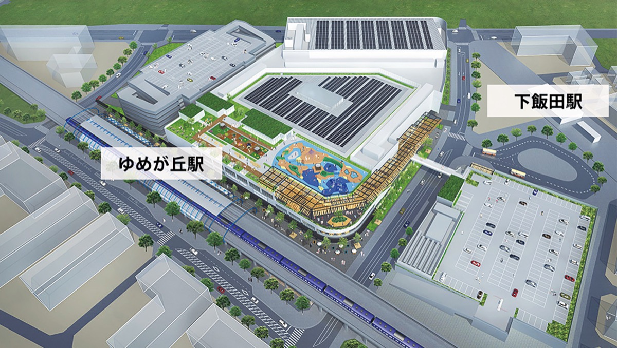 ゆめが丘駅前の大規模集客施設についてはすでに計画が発表されていたが、今回の発表によると街区面積は約4万3000平方メートルで、建物延床面積は約9万6800平方メートル。店舗は食品スーパーなど約140店で、店舗面積は約4万2700平方メートルとなっている。