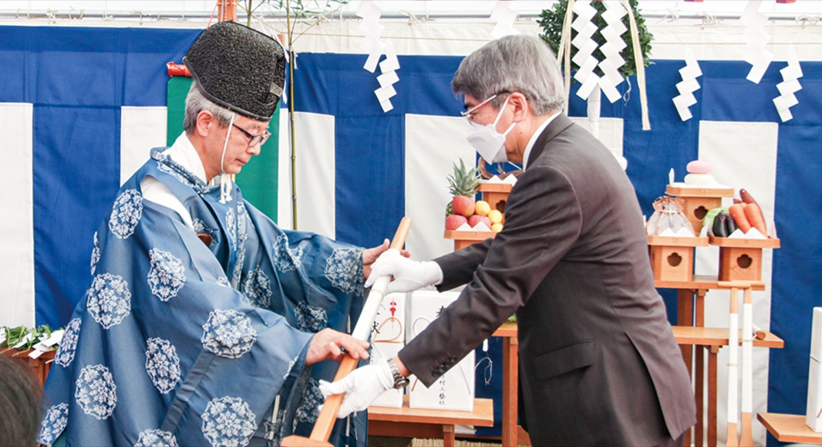 起工式には(株)相鉄アーバンクリエイツ、(株)相鉄ビルマネジメントの森村幹夫代表取締役社長のほか、建設会社や地権者会、泉ゆめが丘土地区画整理組合、地権者会の関係者なども出席。中田北にある御霊神社から小澤恵一宮司を招いて、厳かな雰囲気の中で神事が行われた。