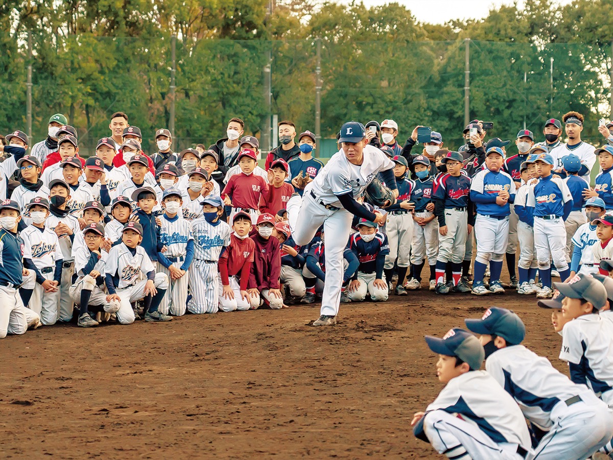 最後は模範プレイが行われ、佐藤投手、青山投手、加藤投手がピッチングを披露すると、子どもたちは「速っ!」と驚いた様子だった。バッティングでは宗選手、手塚選手が場外ホームランを打つと子どもたちは大喜びだった。