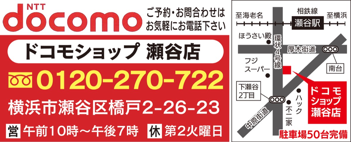 従来の携帯電話の一部が、順次終了を迎えている。「私の携帯電話は使えるの?」「この機会にスマホへ乗り換えよう」と思った人は瀬谷店で相談を。同店では現在、3G電波終了後も使用できる折り畳み携帯やスマホなど、人気の機種を大特価で提供中(1月31日まで。各限定10台)。本体の初期設定を無料で対応してくれるので、操作が不安な方も安心。毎日開催するスマホ教室でも丁寧に教えてくれる。