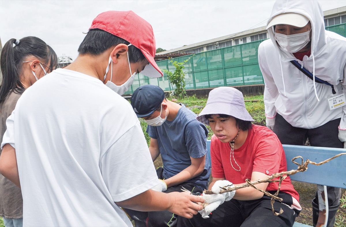 計画の大きな目的が地域との交流・協働だ。種植えや収穫の際には、上瀬谷小学校の児童や近隣住民、中屋敷地域ケアプラザの職員などが協力しており、「地域とのつながりを深めることができます」と担当教諭。作業には同校の小学部や中学部の子どもも参加しており、校内交流にも一役買っている。