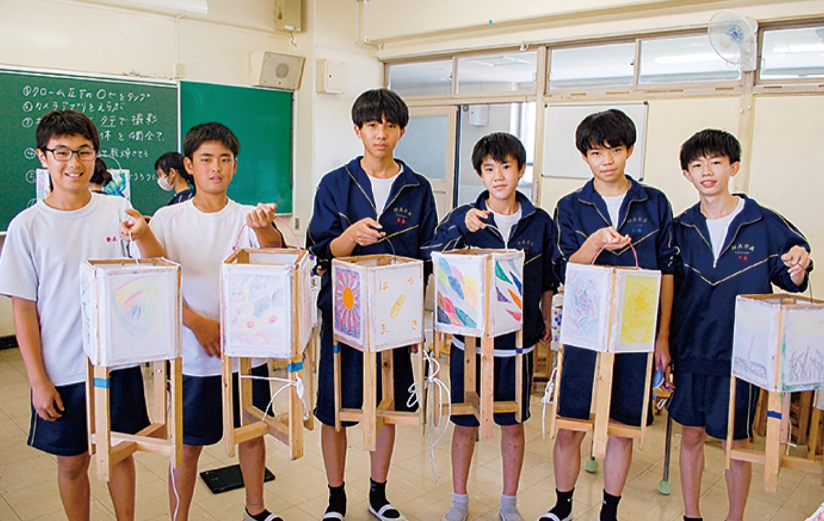 体験を終えた生徒は「絵を破かないように灯篭に貼りつける作業が難しかった。祭りの日に頑張って作った灯篭が飾られるのは楽しみ」と話した。同校の生徒たちが作った灯篭は祭り当日に向原第二公園で展示される予定。