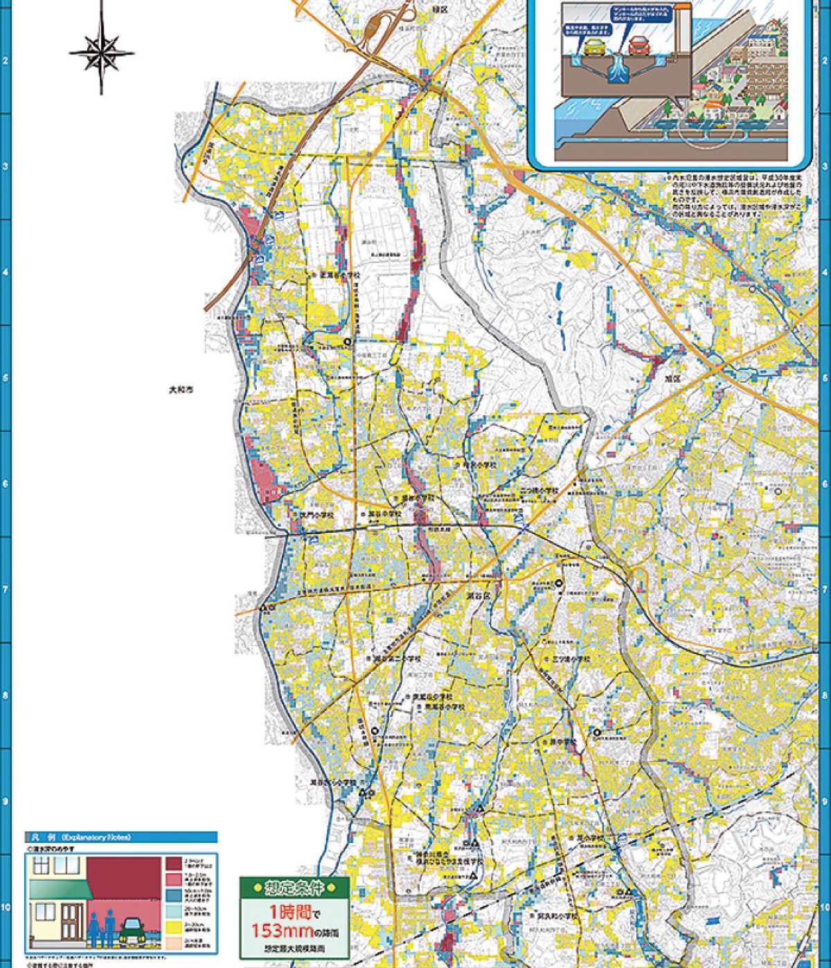 瀬谷区は5本の河川が流れ、浸水リスクも高い街。河川・下水道の浸水対策に努めてきました。風水害の激甚化を踏まえ、浸水リスクが高い場所を示すハザードマップの改正に尽力し、3種類(内水・洪水・高潮)の各マップを分かりやすくすべきと提案。「浸水ハザードマップ」として1枚にまとめ、市内全世帯配布を形にしました。