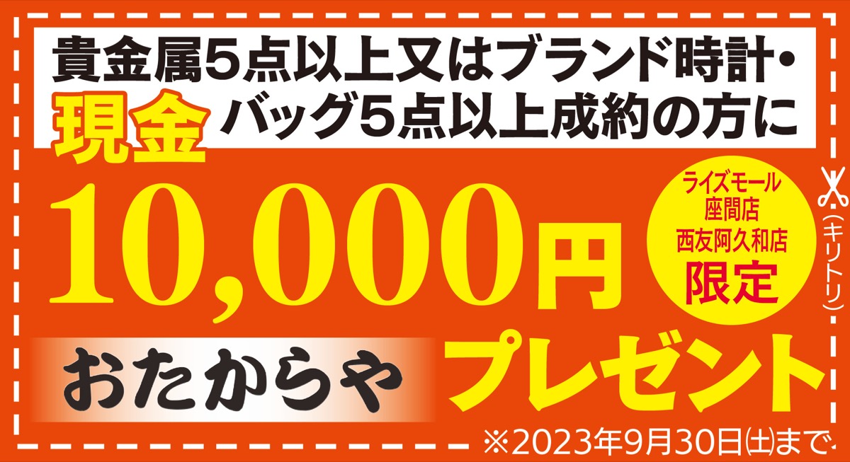 金の国内小売価格が8月29日に初めて1万円台を突破。歴史的高水準の今、金歯や記念硬貨など店頭での買取価格も高額査定が続出中。ブランド時計やバッグも5点以上の成約でさらにお得も。