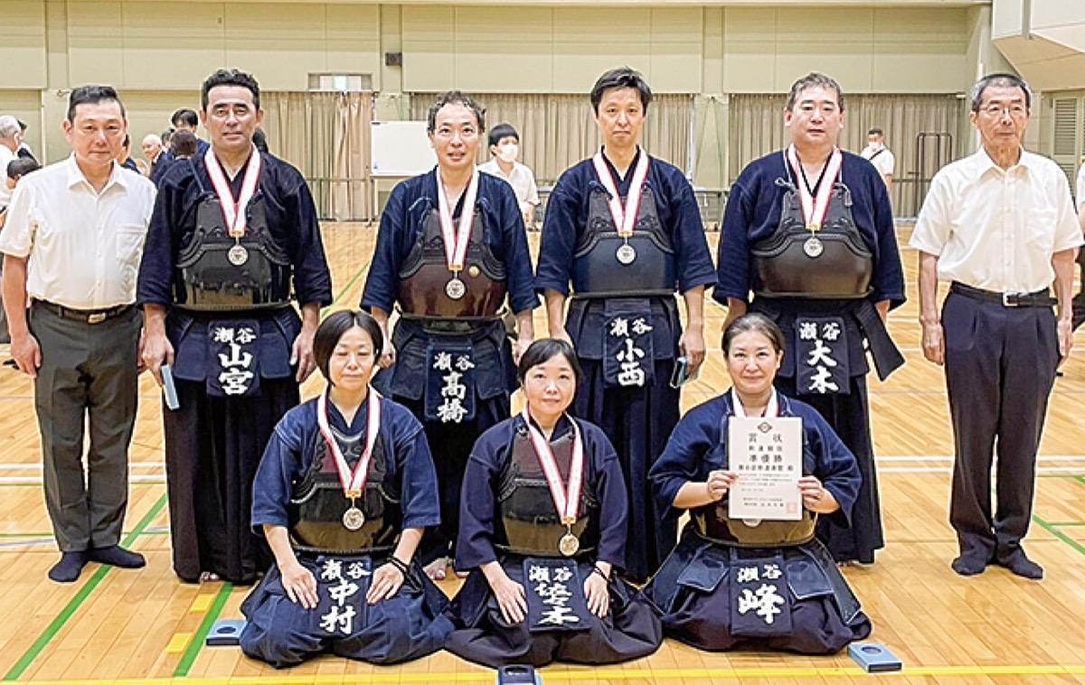 瀬谷区剣道連盟に所属する会員から選出されたメンバーが先ごろ、港北区のスポーツセンターで開かれた大会で、中学生から大学生・一般までの「市民大会」で優勝、女性30歳以上・男性40歳以上の「マスターズ大会」で準優勝を飾った。