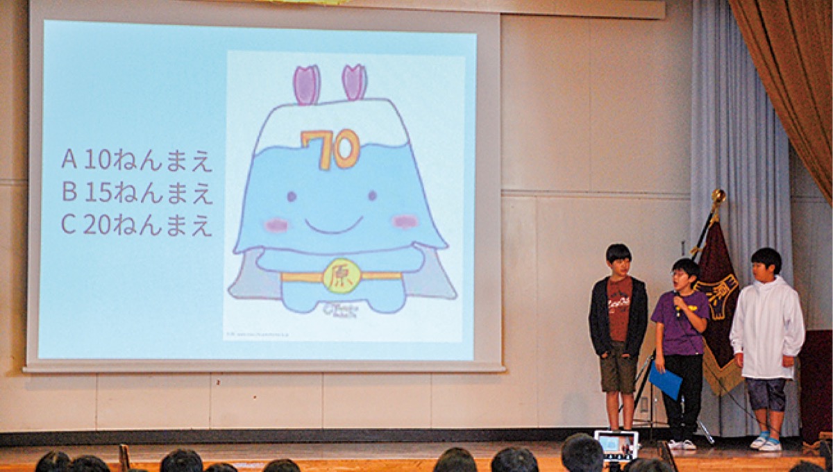 後半では子どもが主役の記念集会が開かれ、6年生が同校の歴史を発表するスライドショーや、児童数が1000人を超えた年など学校にちなんだ問題を出題する「80周年タイムスリップクイズ」を実施。授業の合間に練習したという、身体全体を打楽器に見立てリズムを奏でる「ボディパーカッション」も披露され、来賓たちからは驚きの声や拍手が送られた。児童代表を務めた相沢弦毅さん(6年)は「今の学校があるのは、地域の方々や先輩方がいてくれたおかげ。これからも、良い小学校を作っていきたい」と話した。
