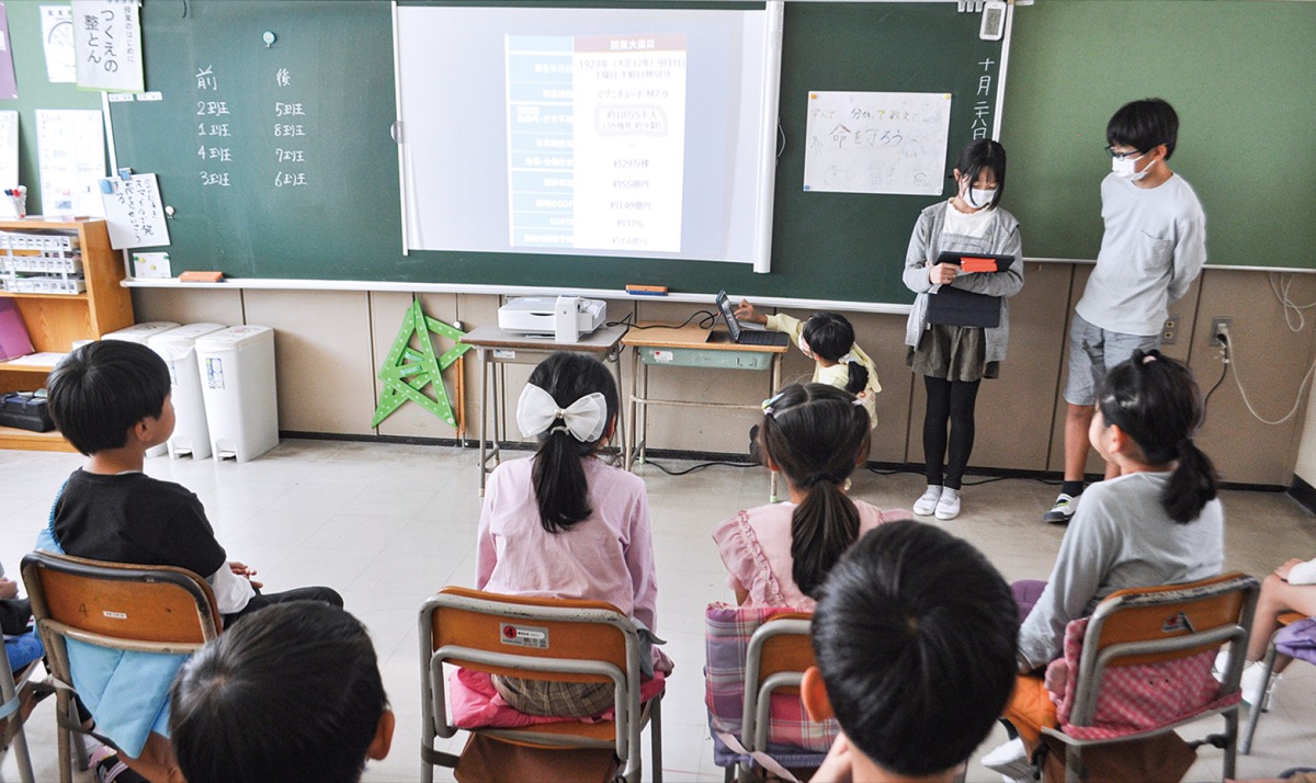 4年生はこれまでに調べた防災学習の成果を3年生に発表し、避難所やハザードマップの役割、今年で100年を迎えた関東大震災の被害などを紹介。防災グッズの解説もあり、水や食料、医療品などに加え、親とはぐれた状況を想定して家族写真を入れておくことを薦めていた。発表した児童は「家の近くの避難所を事前に調べて欲しいです」「必要な防災グッズを知らない人も多い。しっかり確認してください」と話していた。