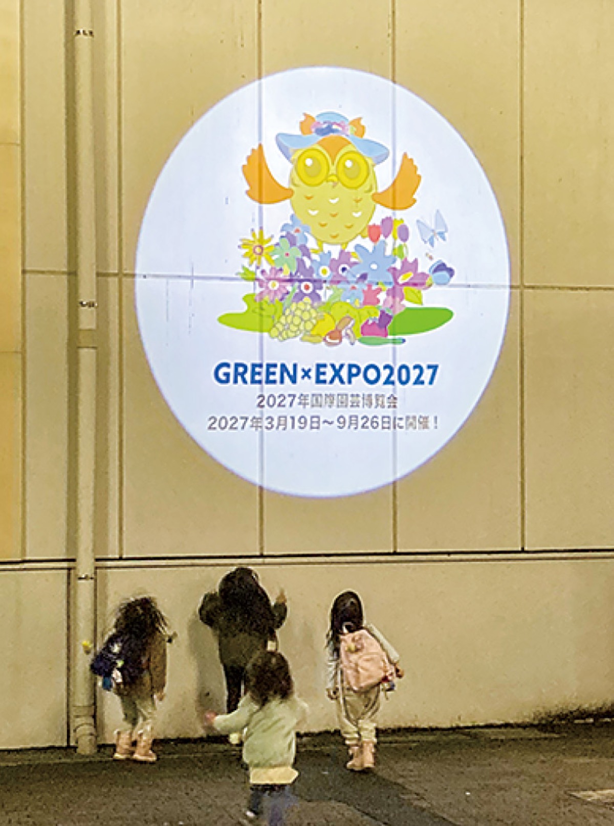 今シーズンはLEDライト約3万球が1月8日(祝)まで広場を彩るほか、万博バージョンの「せやまる」のイラストが駅舎の壁面に投影される。(各日午後5時〜10時)。17日は天候の影響で予定されていたパフォーマンスが中止となったものの、夕方5時前には親子連れなど多くの人が訪れ、カウントダウンに合わせて一斉に灯かりが点くと大きな歓声が上がった。11月1日にお披露目された移動式のせやまるオブジェもこの日だけ登場し、記念撮影をする子どもたちの姿が見られた。