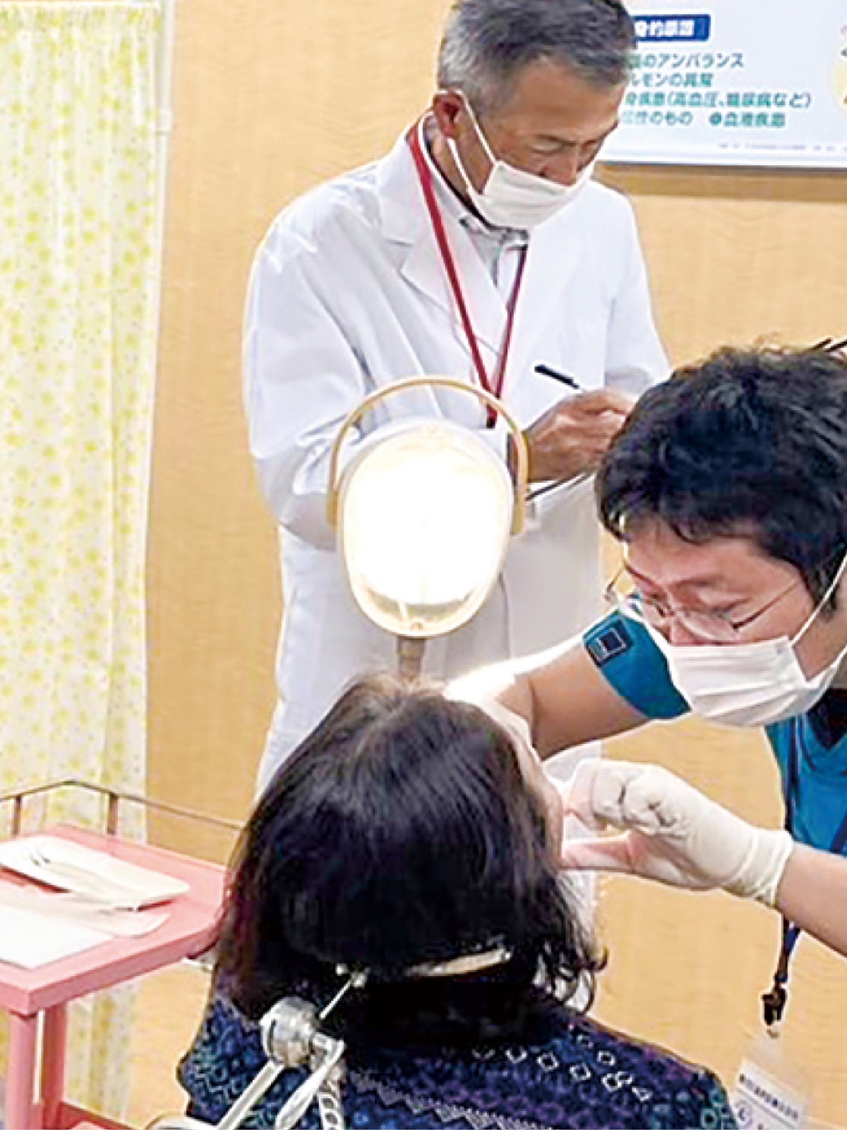 この日は約20人が受診。一人一人に対して、口腔外科専門医と検診協力医のダブル体制による診察が行われた。