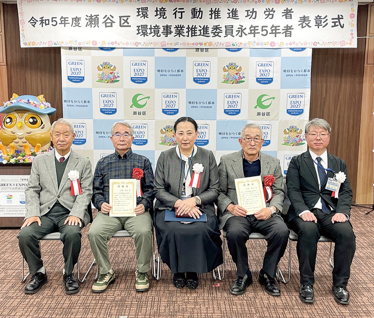 環境行動推進功労者と環境事業推進委員の永年在職者を称える表彰が12月13日、瀬谷区役所で開かれた。