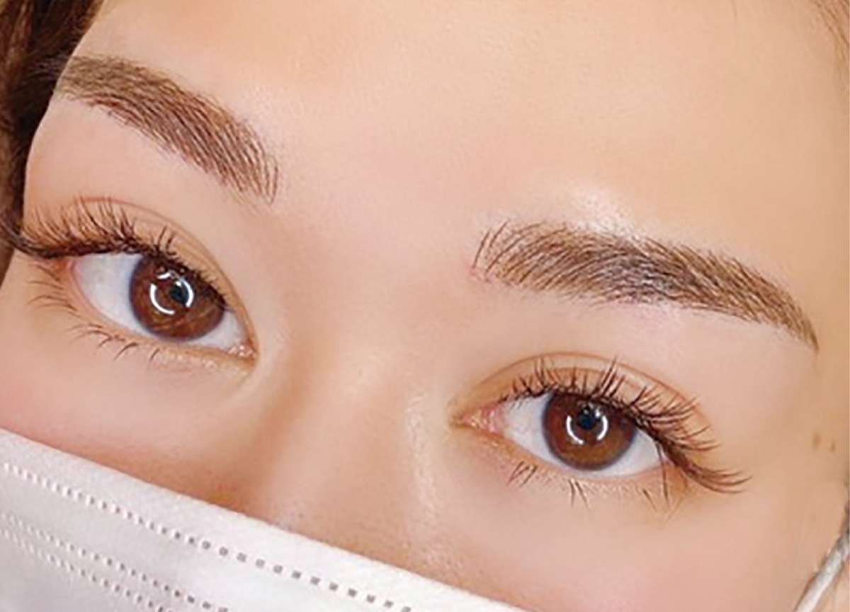 眉毛は1人1人の顔の骨格に合わせてデザインし、オーダーメイドで仕上げ。リップアートメイクは、唇に色合いを足す。色や仕上がりは肌の様子や好みでカスタマイズできる。マスクに口紅がつくことがなくなり、食事でもとれないのが特徴だ。