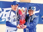 横浜DeNAベイスターズが春季キャンプを行っている沖縄宜野湾球場を訪問。木村洋太球団社長が同席するなか、三浦大輔監督に花束を渡し激励しました。
