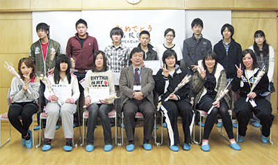諸事情で塾に通えない中学生を対象に、上飯田地区センター(北野信行館長)では、地域の大学生による学習指導を平成18年8月に開始。現在、毎週水曜と土曜に指導している。3月5日には今春卒業する3年生を送る会「お別れ会」を同センターで実施(=写真)、生徒10人を見送った。