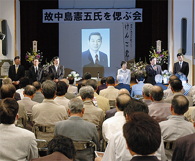 昨年4月に死去した元横浜市会議員、故中島憲五氏(享年63歳)を偲ぶ会が6月11日、JA横浜みなみ総合センターで開催された。泉区選出の横山、梶村、麓、源波の各市議、松本敏元市議、石井、松本の両県議が会派を超えて発起人となり、望月榮中田連合自治会長が実行委員長を務めた。