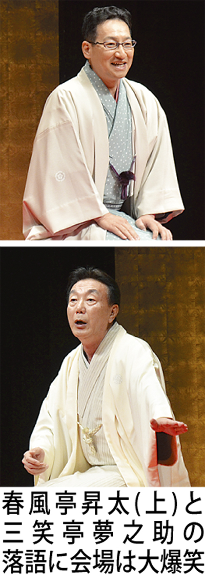 春風亭昇太さんは日本テレビ「笑点」ネタを、三笑亭夢之助さんは色紙ネタを披露するなど、4人の落語家らが会場を沸かせた。