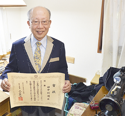 「私たちの業界は賞やコンクールがなくなり、ファッションショーも少なくなっている。仕事が好きで家でコツコツとやってきた甲斐があった」と受賞を喜ぶ田中さんは、タナカテーラーの2代目。戸塚区矢部町で長年商売し、「本当にこだわる」顧客相手に紳士注文服を作り続けてきた。戸塚駅周辺の区画整理を機に、07年から現在の中田東を拠点にしている。