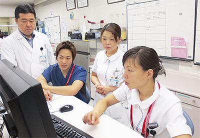 楠田清美看護部長によると、新人からベテランスタッフまで楽しく学べる教育体制を整備。個々のキャリアデザインが描ける支援体制で、自由に意見交換のできる職場風土がベースにある。安全・感染・栄養・褥瘡・緩和などの委員会活動が活発で、専門的な研修を修了したスタッフや認定看護師が中心となり、職員一丸「チーム親善」としての医療を推進している。