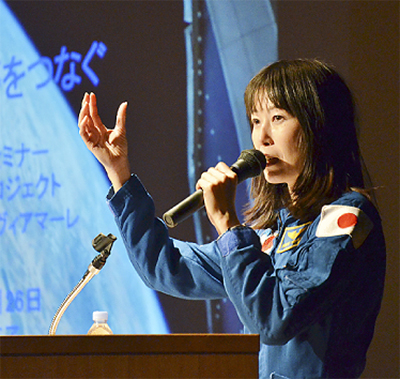 (社)神奈川県宅地建物取引業協会(和氣猛仁会長)横浜市内6支部による市民セミナー「生命の森3プロジェクト〜宇宙・人・夢をつなぐ」が2月26日、はまぎんホールヴィアマーレ(西区)で開催され、日本人2人目の女性宇宙飛行士、山崎直子さんが宇宙の魅力等について話した。