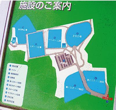 梅林の中の石段を登り、神明台のフェンス沿いに進む。病院と老人ホームの間を通って神明台スポーツ広場(写真)へ。6つの広場があり機会をみて広い敷地内をゆっくり散策したいと思う。市水道局施設、神明台処分場入口を経てフェンス沿いを進むと、また病院と老人ホームがあった。