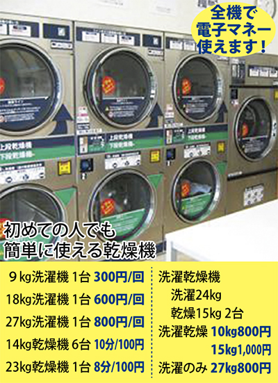 またコインランドリーは天候に関係なく洗濯できるのも大きな魅力の一つだ。これからジメジメの梅雨入りを迎え、洗濯物をためてしまう時季になる。そんな時は同店の洗濯機で一気に済ましてしまおう。羽毛布団も丸洗いが可能なので、衣替えの今が最適だ。今までコインランドリーを利用したことがない人も、この機会に利用してみては。