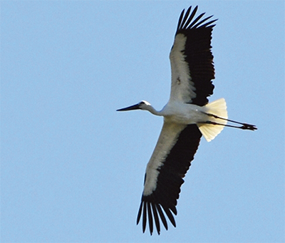 国の特別天然記念物であり、幸せを運ぶ鳥として知られるコウノトリが境川遊水地公園に現れ、西が岡デジカメ同好会に所属する本田英昭さん(72・下和泉在住)が撮影に成功した。
