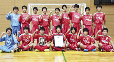 県内の中学生フットサルチームやサッカーチームが参加した同大会。男子13チームがトーナメント戦、女子はリーグ戦で競い合った。フットサル大会への出場は初めてという同チームだったが、初戦から順調に勝ち上がり決勝へ。FC湘南との対戦は点を取り合う展開になったが7対6で接戦を制した。