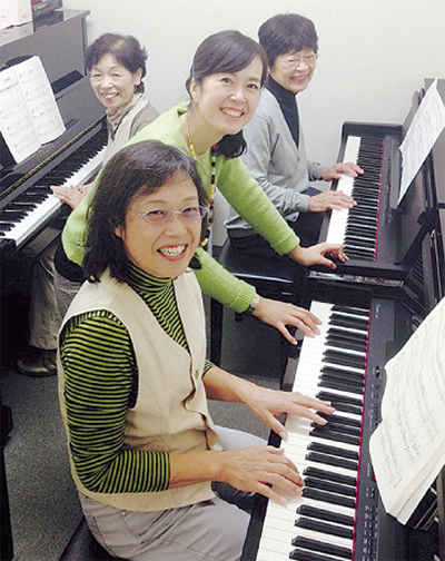 70代で初めて鍵盤にふれた人、子どもが置いていったピアノを弾いてみたい人、仕事帰り趣味の時間を作りたい人もおすすめ。60分の無料体験だけでもほとんどの人が両手で弾けるようになるというから驚きだ。「楽譜も読めないし、続けられるかな……」という心配も無用。グループレッスンで仲間と和気あいあいと学べるので、かつて挫折した人でも今回は長続きできそうだ。