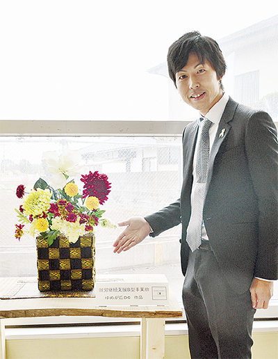 同事業所は、駅すぐそばに昨年4月に開所。脳や心の病から社会へ復帰するための支援活動を行っており、畳のへりを使った小物や造花を使ったフラワーアレンジメント作品などを製作・販売している。徐々に利用者も増え、現在約30人が通所している。