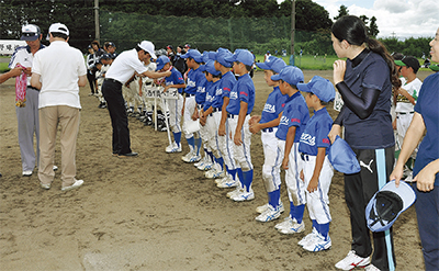 泉区少年野球連盟主催の「親子ふれあいトスベースボール大会」が8月21日、旧深谷通信所のグラウンドで開かれた。横浜市大会の予選も兼ねた同大会。この日は同連盟に加盟する20チームに加え、保護者やスタッフら総勢300人が参加した=写真。
