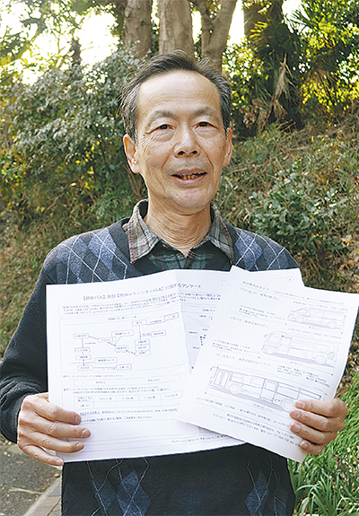 活動のきっかけは2014年。阿部代表が会長を務める新橋西自治会の総会で、バス運行を要望する声が上がったことだった。かつては新橋交差点から松陽高校入口交差点までの坂道を通る路線バスがあったが、採算が取れなくなり約15年前、廃止に。以来、坂の上の住民は、近隣の駅やバス停へ行くにも急な坂道を通らざるを得なくなった。