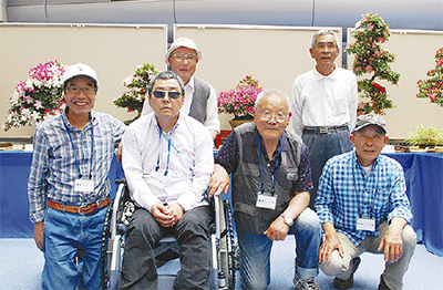 さつきを通した仲間づくりと技術向上を目指して結成され40年。会員たちはそれぞれ自宅で30鉢前後を栽培しており、毎年、花が咲く時季の花季展を楽しみにしているという。今年は例年に比べて気温が安定しなかったため、管理が難しかったというが、会場にはさつき22点、やまあじさい6点の見事な作品がずらりと並び、訪れた人たちの目を楽しませた。