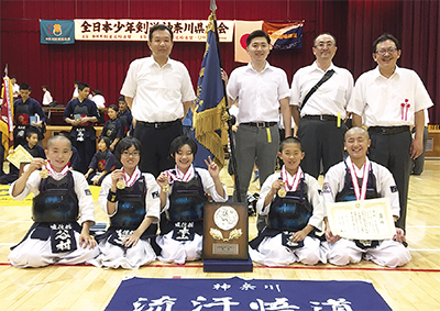泉が丘中学校を拠点に活動する直信舘和泉道場(小林孝行舘長)の小学生団体チームが6月4日に鶴見大学で開かれた「神奈川県道場少年剣道大会」で優勝し、7月に日本武道館で開かれる全国大会への出場を決めた。