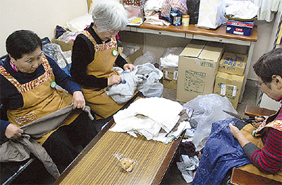 活動は毎週木曜日の週1回。最重度で言葉でのコミュニケーションが困難な利用者を中心に、散歩や食事の介助などを行っている。同園職員によると「利用者それぞれの特性を理解して対応するとともに、温かい声がけを続けてくださっている」と話す。活動は介助といった支援にとどまらず、衣類の補修や古着を再利用した使い捨ておしりふきの製作にも及ぶ。