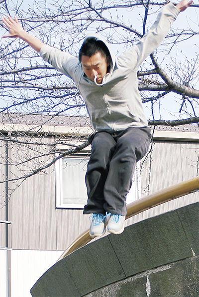 現在は週に3〜4日ほど地蔵原の水辺でトレーニングを行う傍ら、教室も開講している。パルクールは「道のない場所を道にすることができる。自分自身と向き合うこともできる」と話す。
