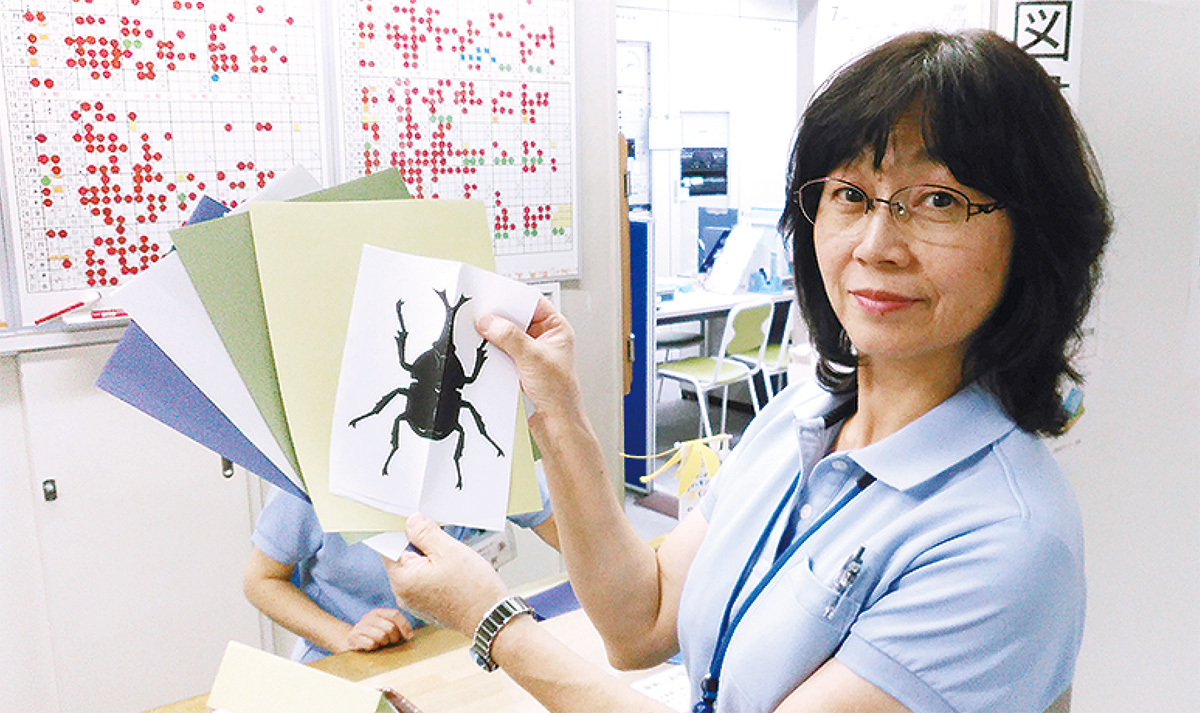 7月21日から受付カウンターに切り紙の制作キットを設置。カブトムシやクワガタ、チョウ、トンボなど、自分の好きな虫を選んで作ることができるようになっている。スタッフは「切り紙の本もあり、子どもたちは楽しみながら作っている。ハサミ1本で作れる手軽さもあり、日に日に昆虫が増えていますよ」と話す。日々、自作の切り紙を貼り付ける子どもたちの姿が見られる。