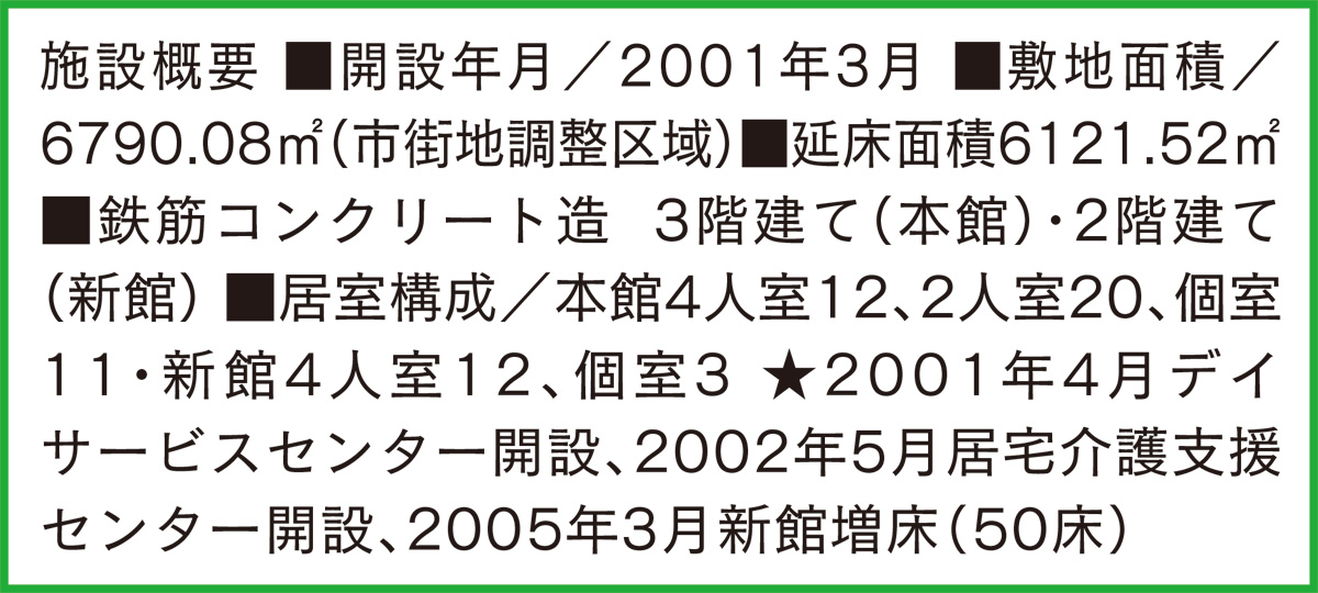 入所者とその家族第一主義は大前提。日々の暮らしにおける感動や穏やかな触れ合いの場の提供こそが使命だと考える。季節ごとの行事やボランティアによる催し、クラブ活動、誕生会など施設をあげた取り組みは一体感にあふれている。