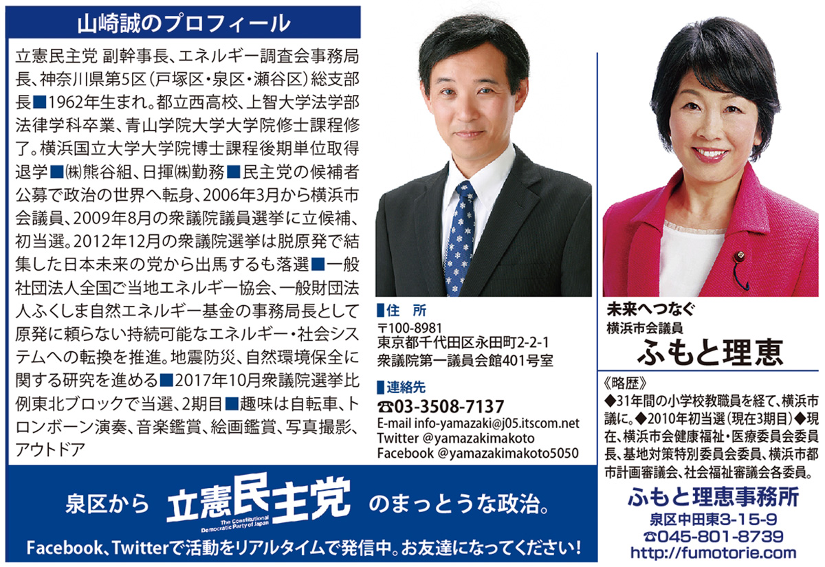 このたび立憲民主党神奈川県第5区(戸塚区・泉区・瀬谷区)総支部長を拝命いたしました、山崎誠です。総支部長就任を機に、私の政治の原点の地である横浜での活動を再開させていただきます。