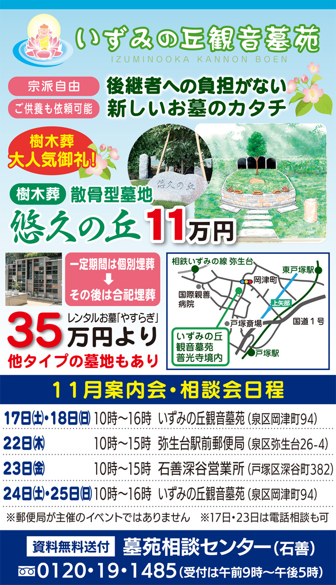 今年9月にいずみの丘観音墓苑(岡津町94・普光寺境内)内にオープンした、散骨埋葬型の樹木葬「悠久の丘」が人気だ。