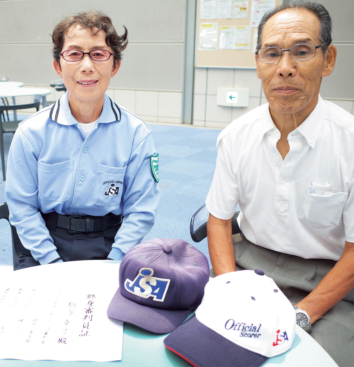相澤さんは「常に正しいジャッジを心がけ、試合の度に一日を振り返ることの繰り返し。役員・協会・チーム、そして家族に支えられてやってこられたことに感謝しかない」と頭を下げる。泉区ソフトボール協会の理事長で、終身記録員でもある牧内伸二さんは「とても名誉なことで、心から祝福したい。引き続き、グラウンドで躍動してほしい」と、「終身」の称号授与を喜んだ。