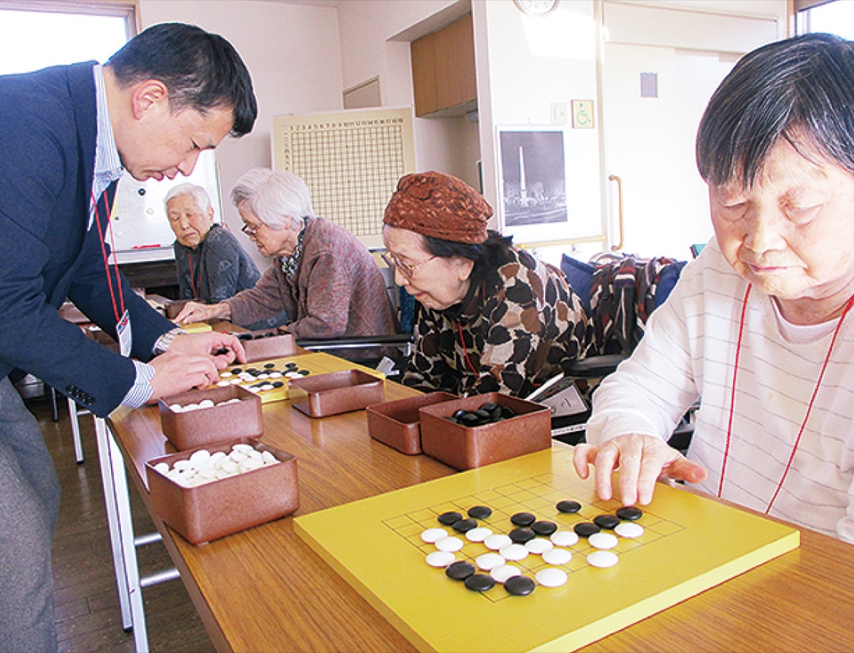 囲碁(プロが指導)、カラオケ、書道のほか、外部講師やボランティアを招いての企画も充実。リハビリは、運動療法・音楽療法を実施。