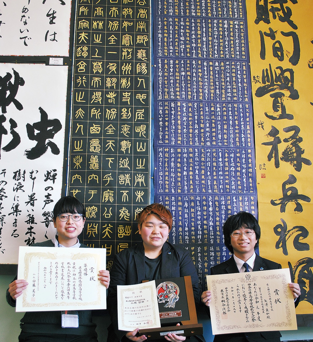 横浜修悠館高校書道部が今、大活躍中だ。県高等学校総合文化祭第56回書道展では、1年生の矢澤良和さんが第2位を受賞し、全国大会出場が決定。また団体の部でも同校は準優勝を果たし、今月には「神奈川県教育委員表彰」を受賞するなど勢いが止まらない。