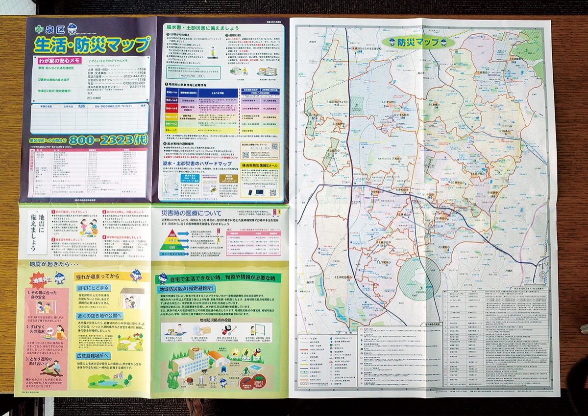 泉区役所は2020年度版の「生活・防災マップ」を作成し、区役所1階広報相談係の窓口で配布している。