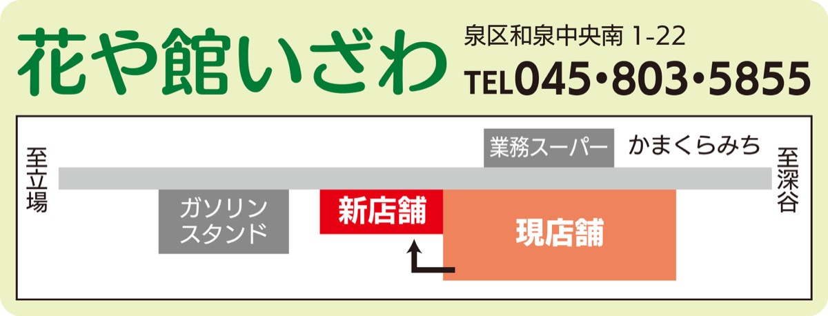 「農家さんが買いに来るお店」として地域に親しまれてきた和泉中央南の花や館いざわ(かまくらみち沿い・業務スーパー向かい)が本日、5月28日(木)を以て、現店舗での営業を終了する。