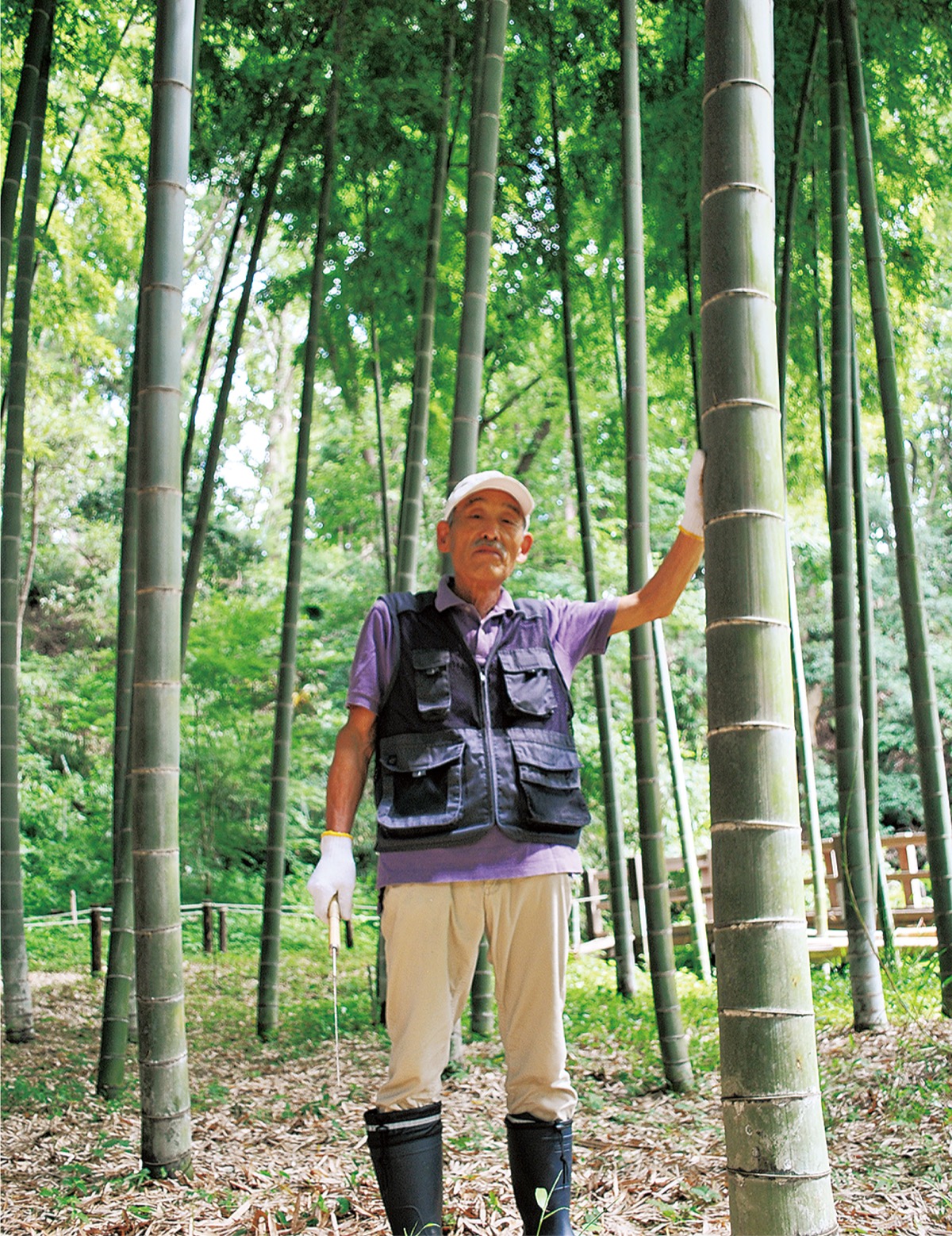 天王森泉公園(和泉町)の竹林の維持管理を中心となって行っている大西利夫さん。「古都のような風情を感じて欲しい」と景観の向上に努めると同時に、竹の魅力を広めるため定期的に広報の発行も行っている。
